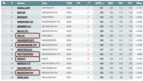 Pouze 16 býků z celé databáze, kde přibyli poprvé býci z Itálie a Chorvatska, splňuje hranici indexu mléka 135. Chovatelské družstvo Impuls má v nabídce 5 býků ze 16, kteří mají MW 135 a více. Dva pochází z domácího šlechtění, jeden je bezrohý homozygot, všichni býci splňují kritéria pro robotické dojení, 3 býci jsou genotypu A2/A2.